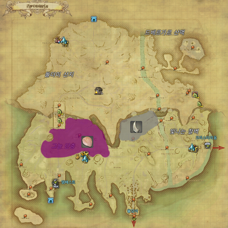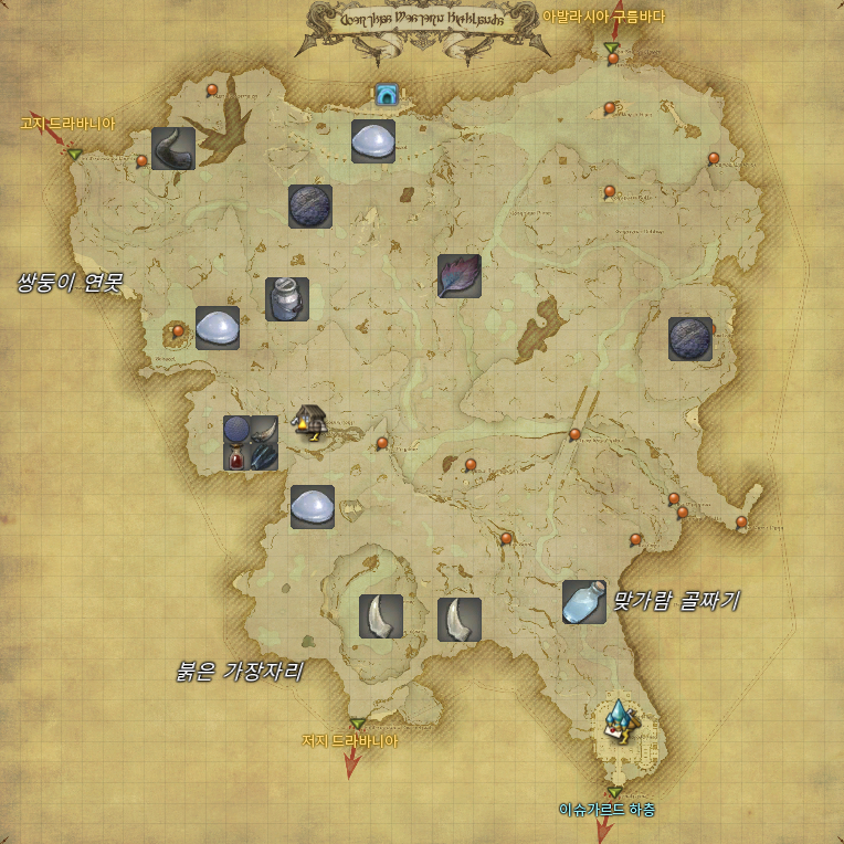 [채집] 몬스터 재료 -효월 편- [채집] 몬스터 재료 -칠흑 편- [채집] 몬스터 재료 -홍련 편- 매번 어디서 구하는지 열받아서... 정리... 전투해야 하지만 일단은 채집(?)물이니까... 목차 1. 커르다스 서부고지 2. 고지 드라바니아 3. 저지 드라바니아 4. 드라바니아 구름바다 5. 아발라시아 구름바다 6. 아지스 라 다른 마물의 위치도 알고 싶다면 FF14 필드 마물 검색 참고 기본적으로 직접 몬스터를 잡는 건 효율이 구리지만 어쩔 수 없다. 관련 몬스터가 나오는 돌발을 하는 것도 좋은 방법이다. 지도에 표시된 것보다 다양한 곳에 몬스터가 분포하고 있습니다. 이딜샤이어에 있는 재료 상인과 전투 집사를 돌리는 게 제일 좋다. 커르다스 서부고지 아이템 이름 몬스터 이름 관련 상인 볼록눈의 눈물..